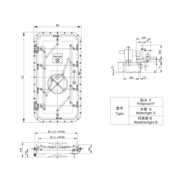 Drawing of Quick Action Marine Watertight Steel Door Marine Outfitting